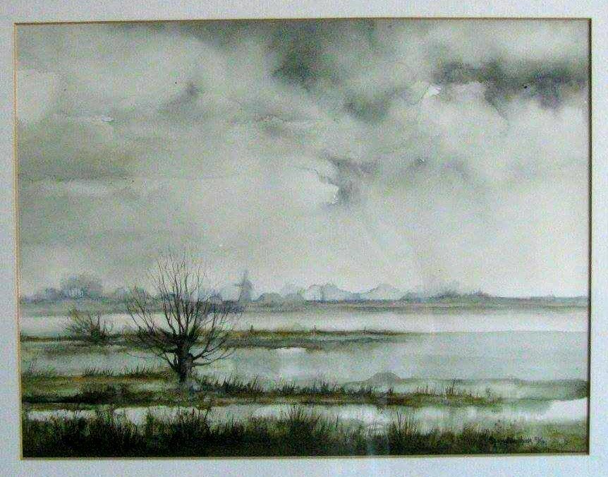 Deze aquarel was gestolen tijdens pa’s verhuizing en Inez maakte haar impressie ervan zonder enige direkte referentie, alleen haar eigen visuele indruk. tzt zal die aquarel er weer zijn, en hier ook te zien. ( de originele artiest heeft opdracht om een replica te maken, gebaseerd op de foto hierboven)